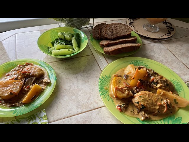 Вкуснотища в одной сковороде! Приготовила простое блюдо + малосольные огурцы.