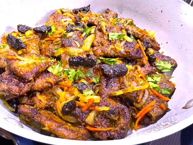 Этот рецепт от канала Милена Кулинарные Pецепты подарит вам по-настоящему нежную, сочную и ароматную говяжью печень. Благодаря небольшой хитрости — вымачиванию с содой — печень становится мягкой, буквально тает во рту. А сочетание с черносливом и овощами превращает блюдо в праздничный деликатес.